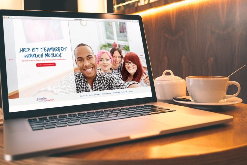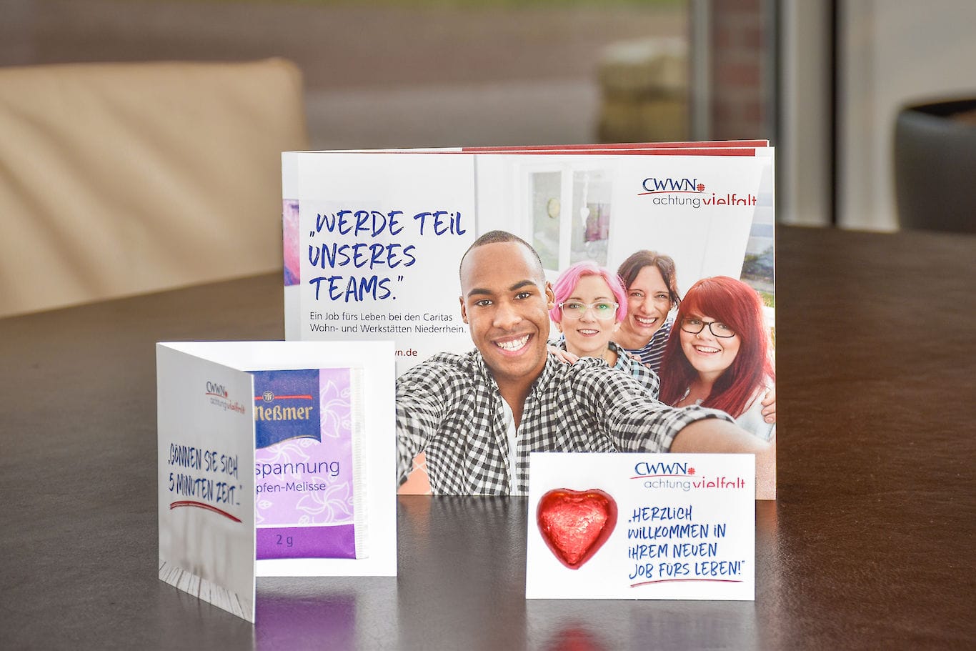 Am Wochenende präsentierte die CWWN erstmals die mit Team Meuter entwickelte Kampagne „Ein Job fürs Leben“. An zwei Tagen stellten die Mitarbeiter den Besuchern auf der Gesundheits.Messe.Duisburg die Arbeit bei den CWWN vor und präsentierten die CWWN als Arbeitgeber. Der Messestand hob sich plakativ von den Mitausstellern ab und zog zahlreiche Interessierte an. Die einheitliche Kleidung mit gestickten Aussagen wie „Lieblingskollege“ oder auch „Durchstarter“ waren nicht nur ein Blickfang, sondern führten auch die Aussagen der ausliegenden neuen Broschüre fort.